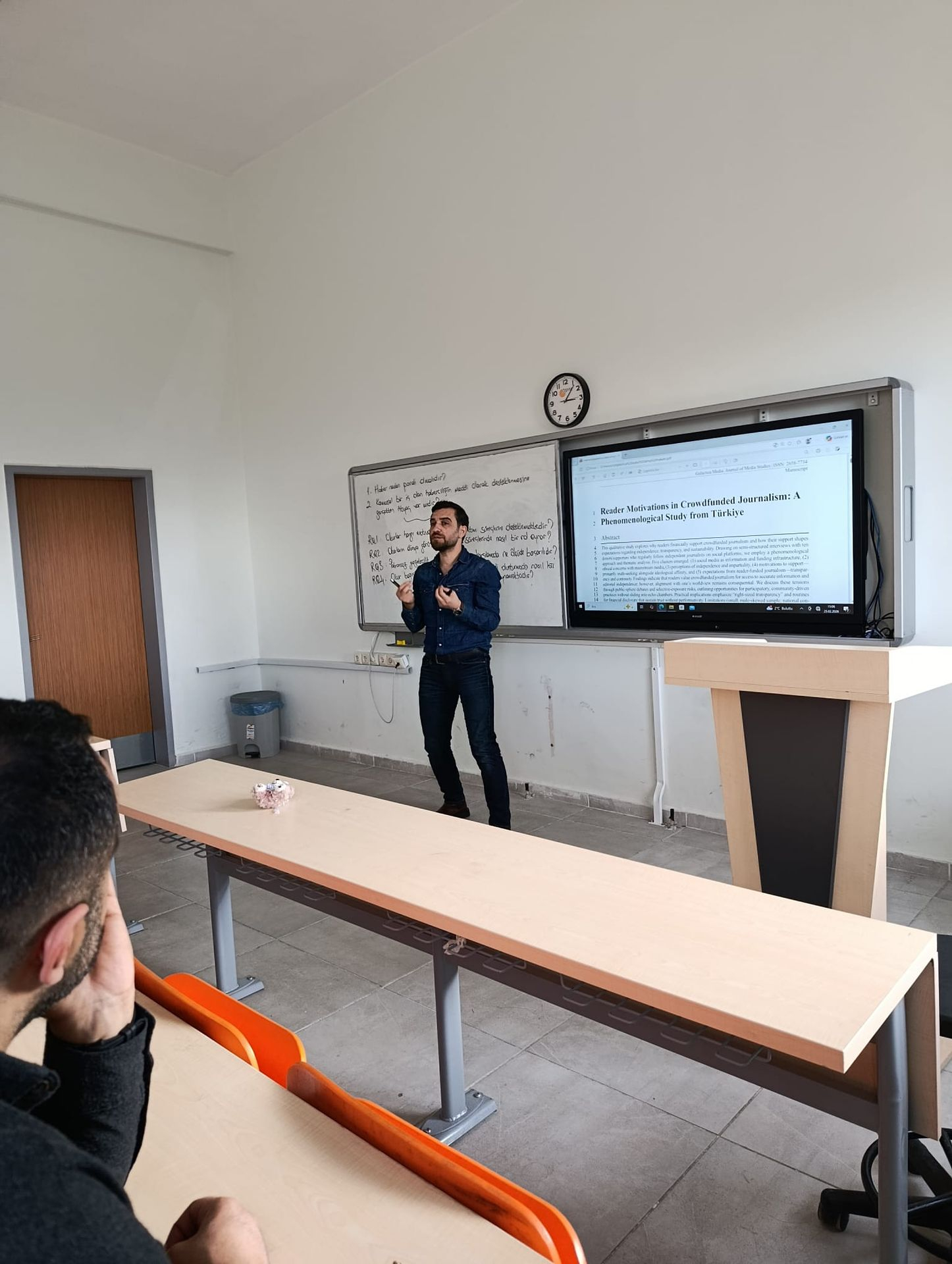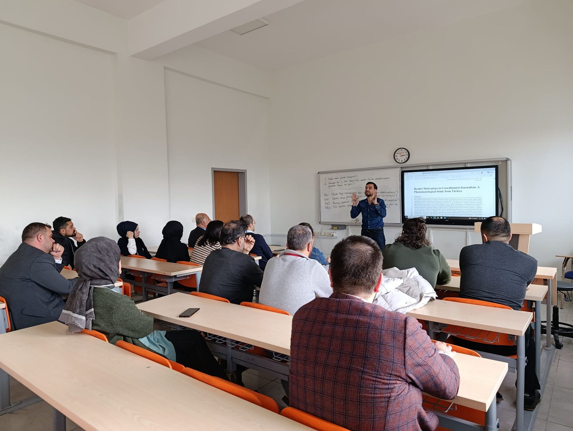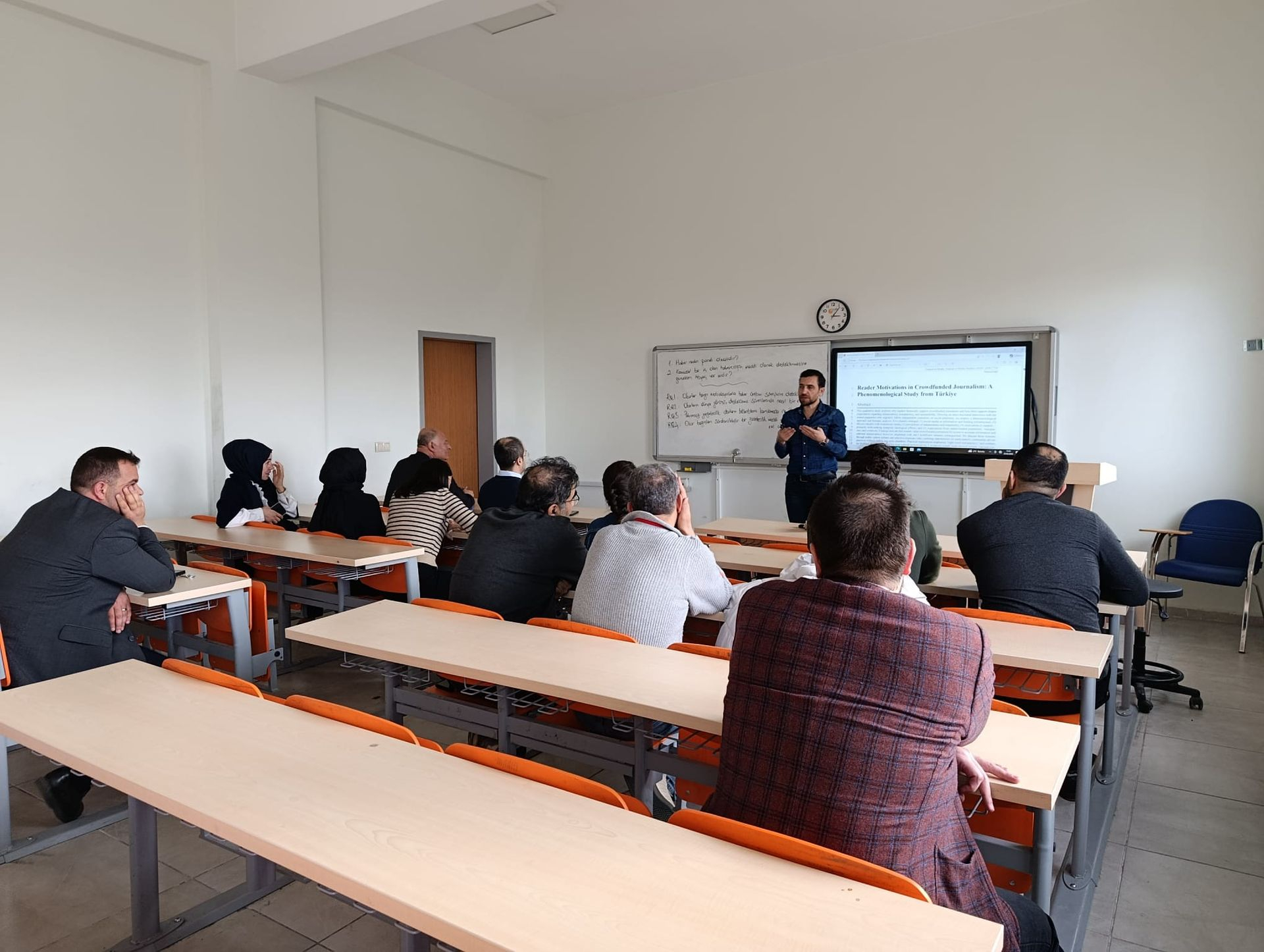Bu kapsamda Dr. Öğr. Üyesi Hakan Bakar, patronsuz gazetecilikte okurların haber üretim süreçlerini destekleme motivasyonlarını ele aldığı ve prestijli bir dergide kabul alan araştırmasını birim öğretim elemanlarıyla paylaştı.